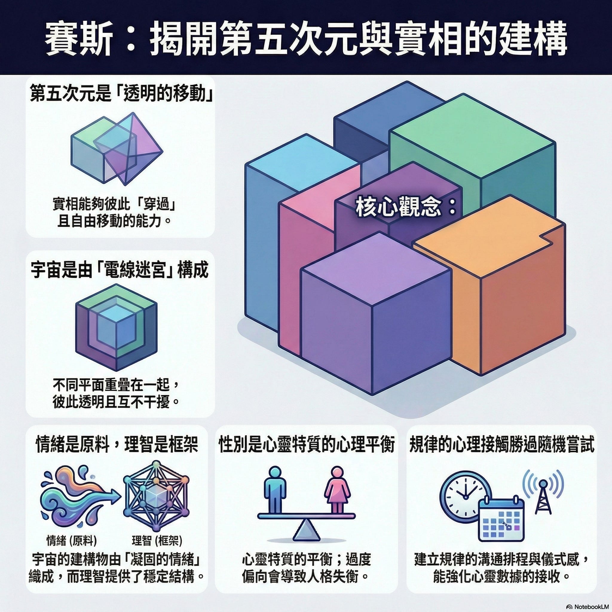 拆除腳手架:賽斯強調,這些電線和立方體其實並不存在,只是為了讓我們理解而創造的「虛構構造」。就像房間的牆壁對賽斯來說是透明的一樣,所有的物質邊界本質上都是一種心理建構。