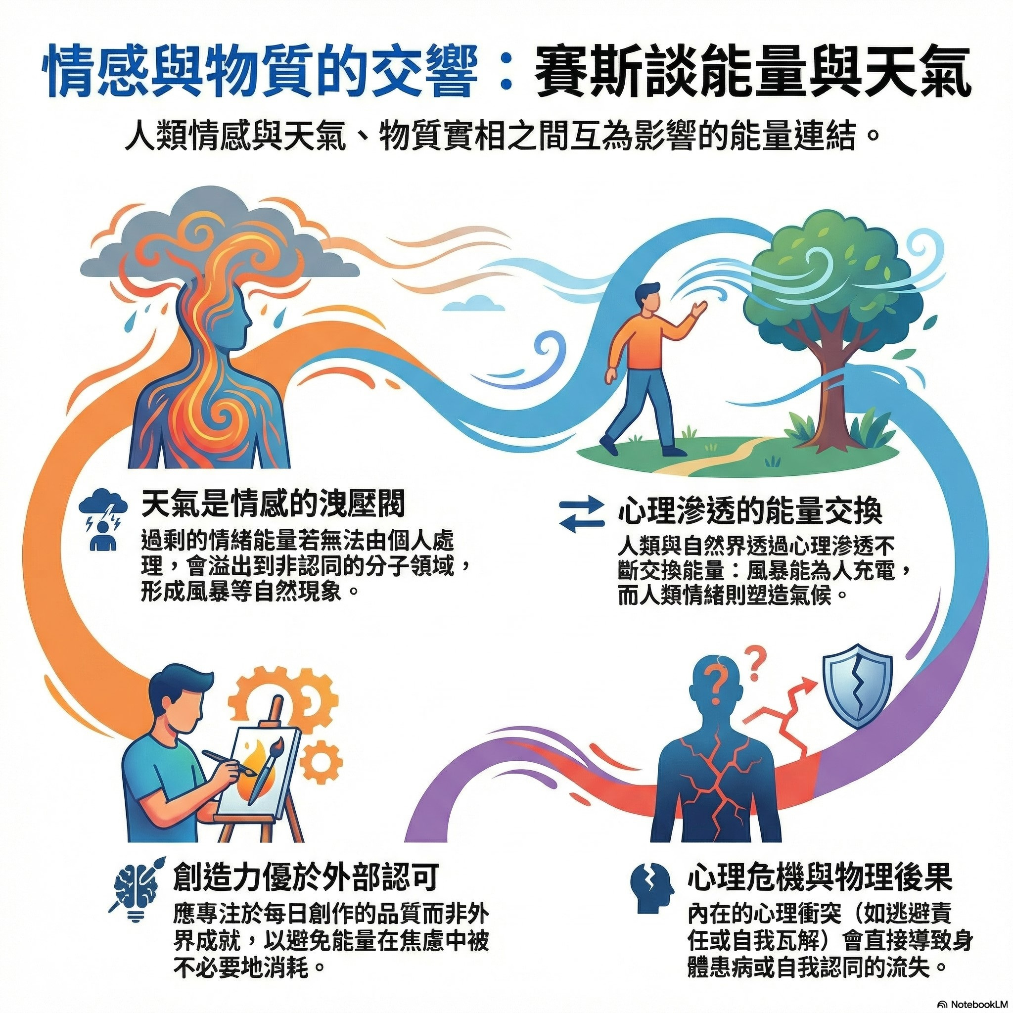 能量洩漏: 當人類無法處理過剩的情緒能量時,這些能量會「流向」非人格化的分子結構,進而引發物理上的風暴。