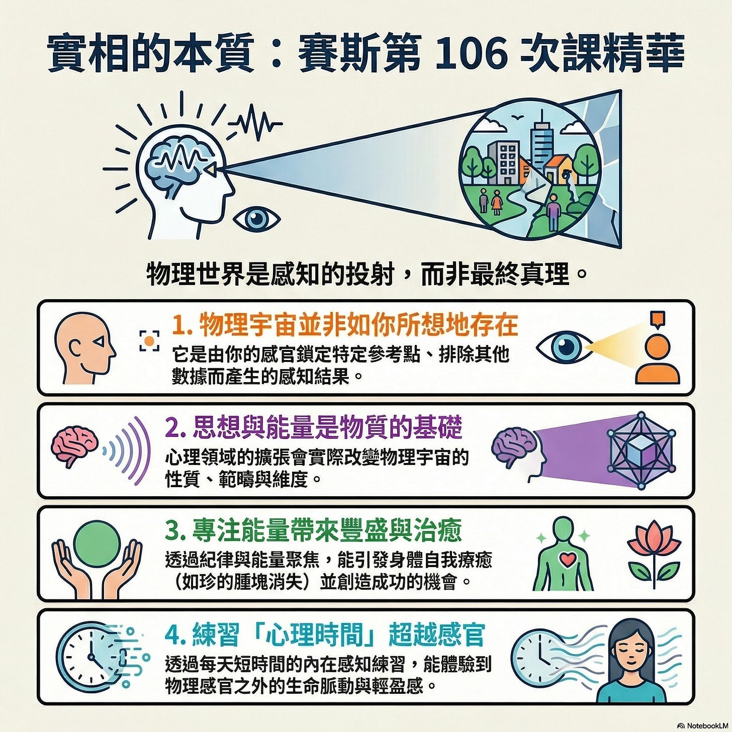 「思想和心理能量形成了物理宇宙的基礎,思想領域的擴張與衝刺將真正擴展並改變你們物理宇宙的性質、範圍和維度,而且這種改變是以任何其他方式都無法實現的。」