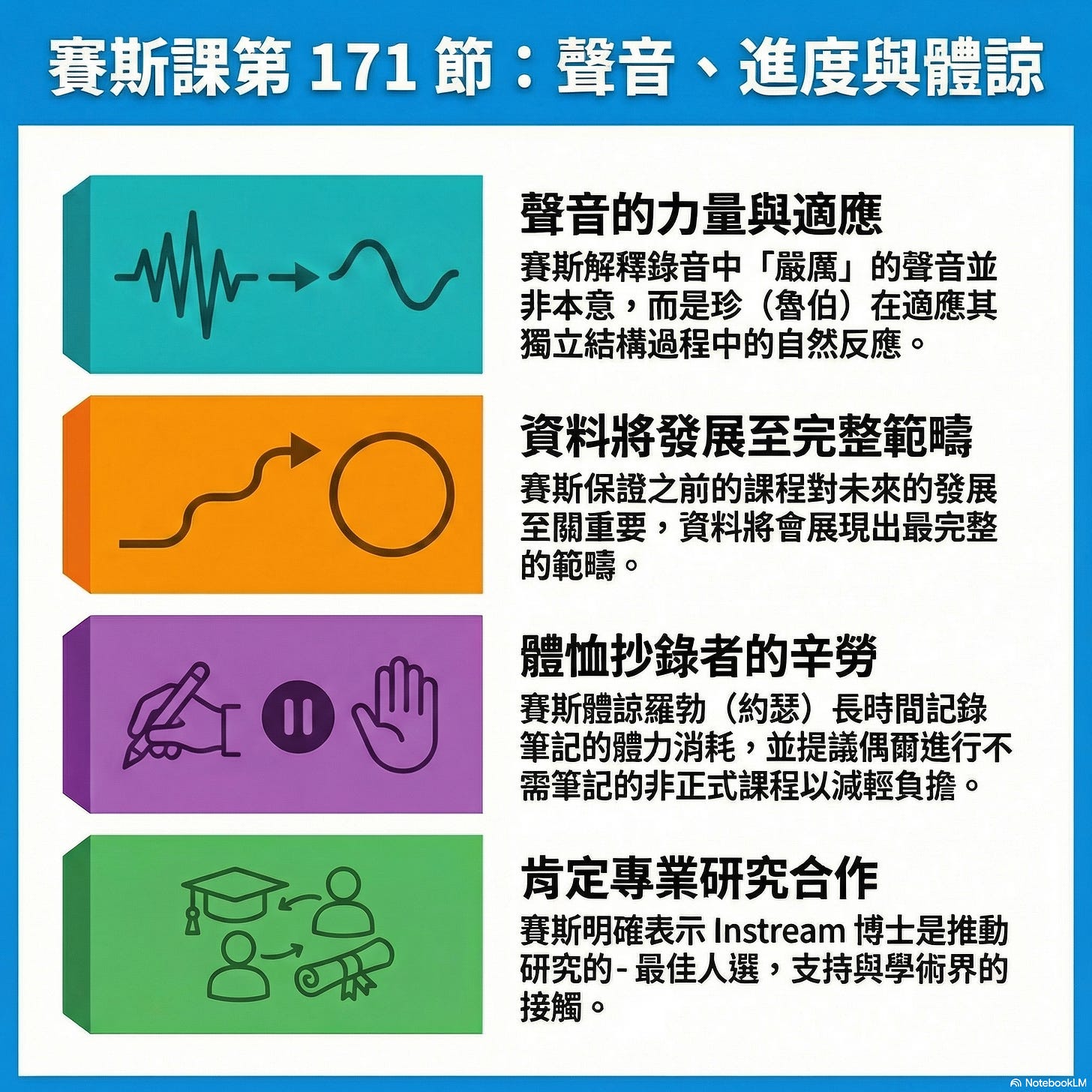 現場氛圍: 這是一個差點「流標」的節次。珍(Jane)和羅(Rob)因為週一那場馬拉松式的超長節次而感到精疲力竭。羅一直埋頭整理筆記直到晚上九點,最後兩人才臨時決定:「好吧,既然都準備好了,那就簡單聊聊吧!」這是一場非常簡短、在安靜的後房進行的對話,珍甚至連眼睛都沒睜開。