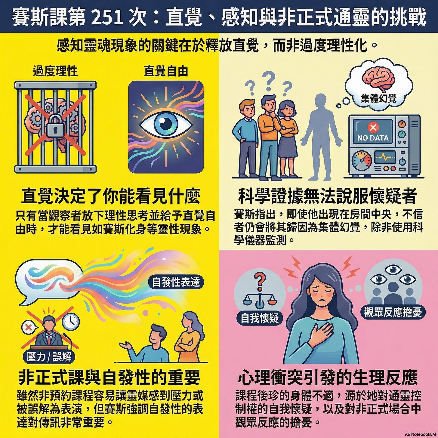 證據的諷刺: 賽斯吐槽說,就算他真的大搖大擺地出現在房間正中央,那些不想相信的人還是會說那是「集體幻覺」。這告訴我們,人類的固執程度連高次元靈魂都覺得沒轍。