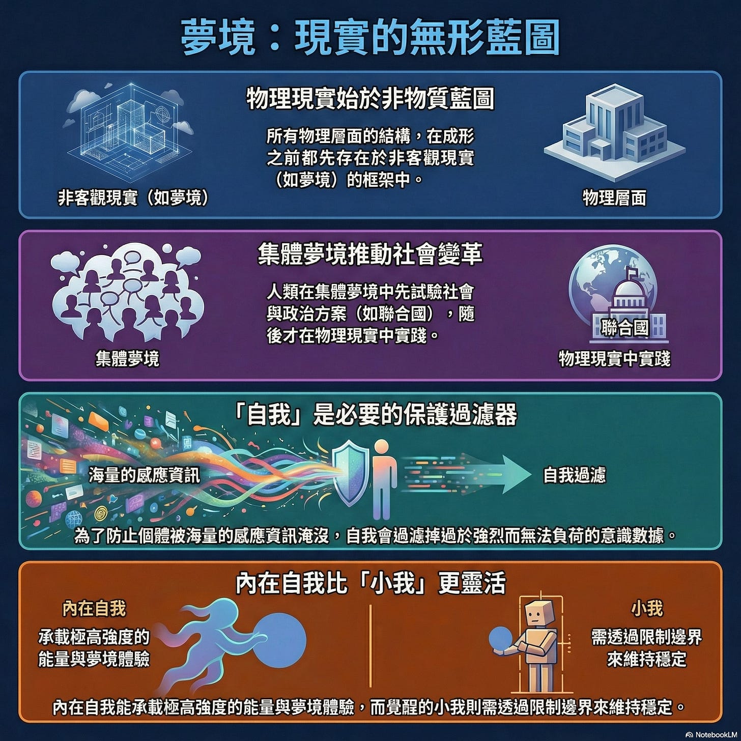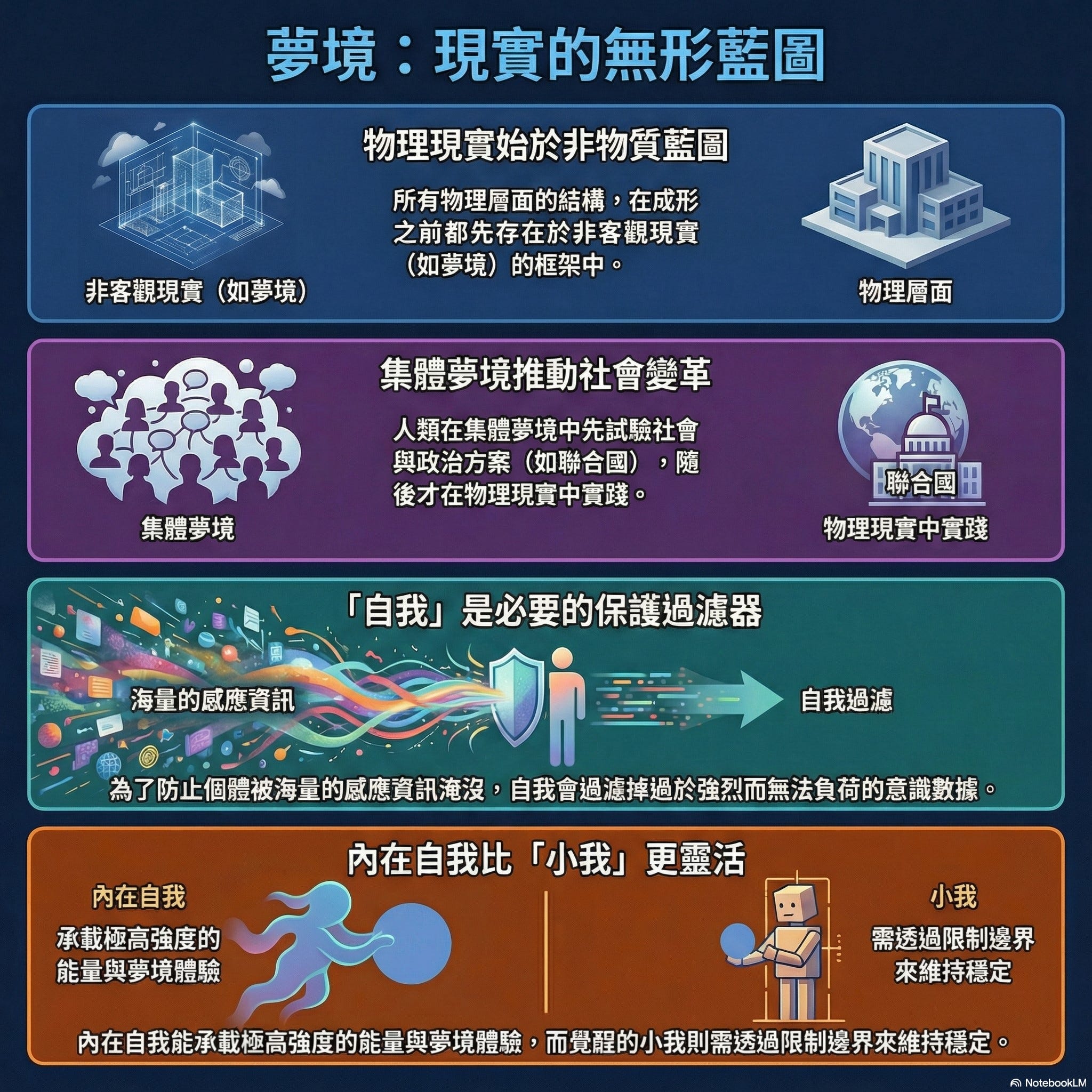 社會變革的推手: 舉個例子,那些反對種族歧視的人,會先在夢裡集體「預演」各種改變的可能。這些夢境釋放的能量,最終會推動歷史的演進。